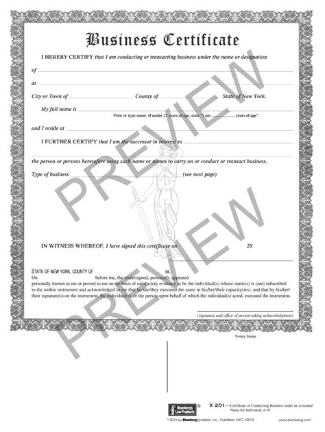 Read Business Certificate Form X201 Doc